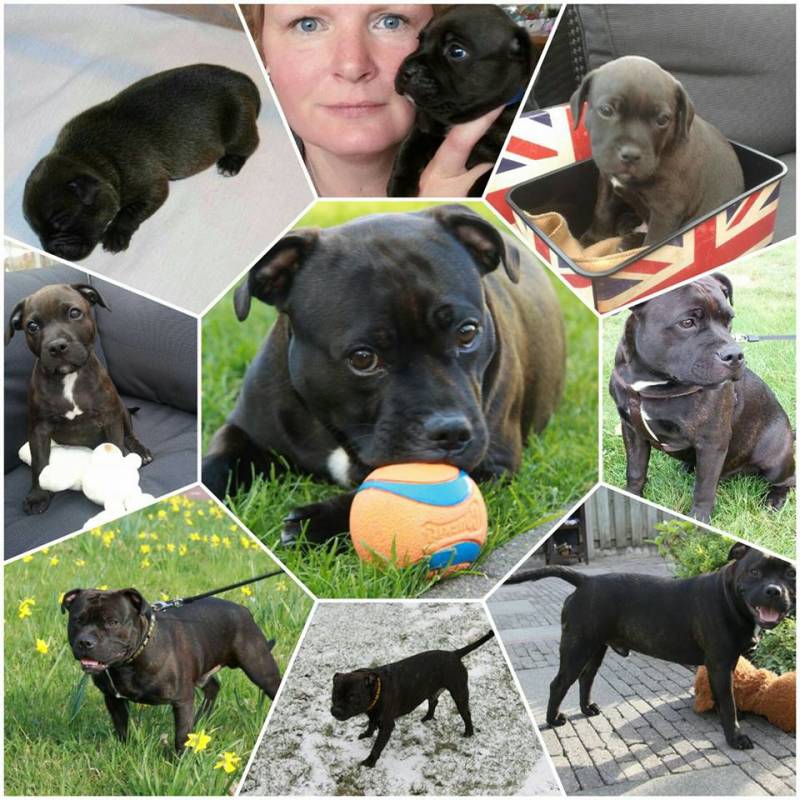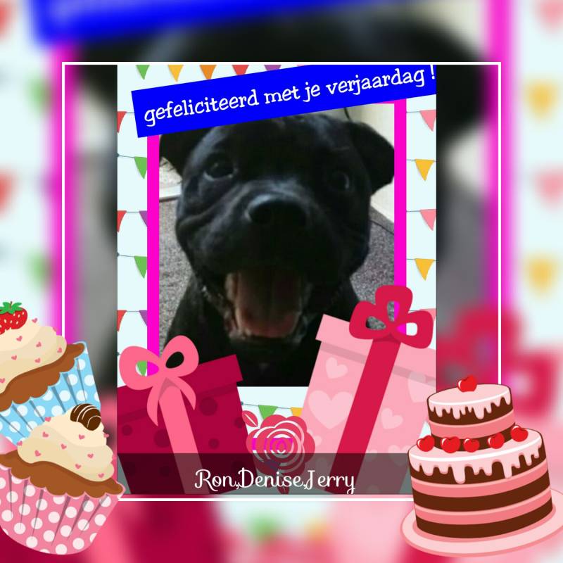 !8-03-2017 de pup's Jerry, Mylo, Sky en Ninka vieren hun eerste verjaardag! Ninka en Ivy hebben een kaartje gekregen van broer en zoon Extreme Black Love Over Gold ( Jerry).