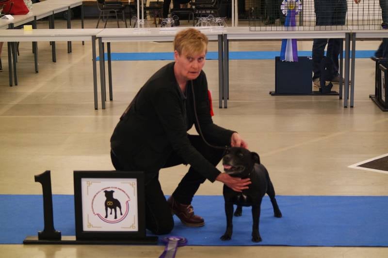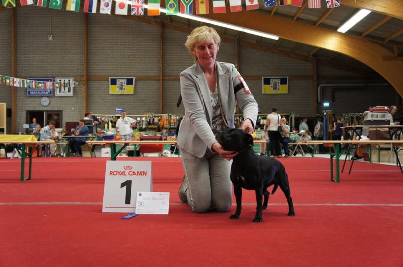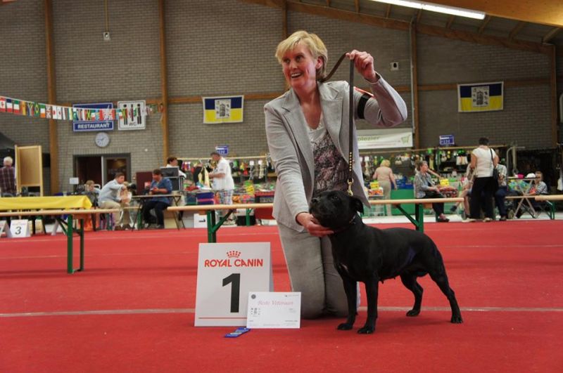 Annette met DYNAMIC BLACK ONIX LOVE OVER GOLD (Marley) in Oss op show waar hij een 3 de plaats UITMUNTEND kreeg!
