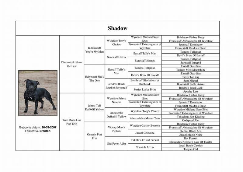 Het stamboom van onze Shadow, nu bijna 11 jaar